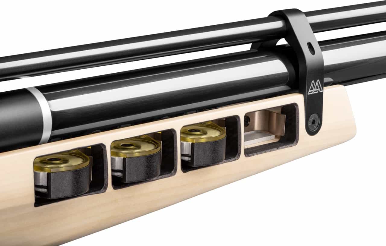 The MPR Biathlon includes a removable air cylinder that can be filled up to 200 bar (2900 PSI), providing approximately 120 consistent shots per fill.